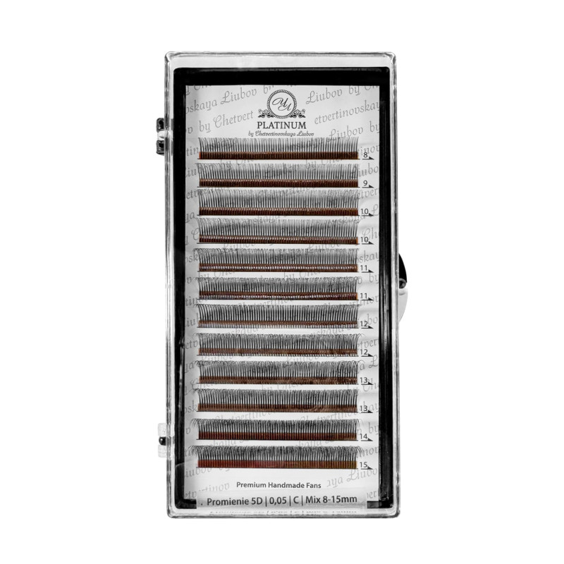 Twórz wyraziste i modne stylizacje rzęs, które przyciągają spojrzenia. Kępki promienie 5D PLATINUM to gotowe kępki o charakterystycznej promienistej strukturze, stworzone z myślą o nowoczesnych i teksturowanych stylizacjach rzęs.