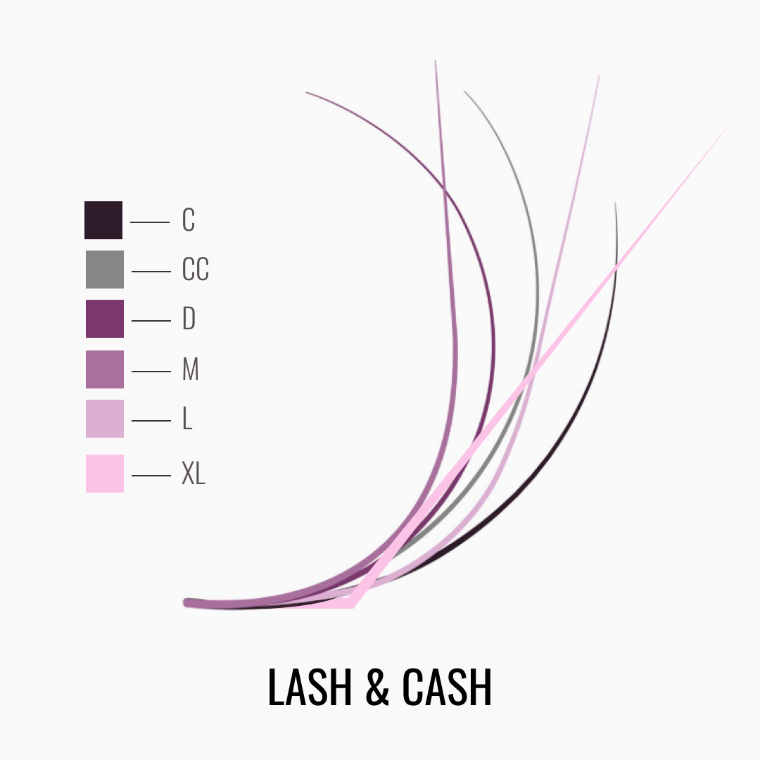 Kasetka LASH&CASH zawiera 28 silikonowych pasków, gęsto wypełnionych wysokiej jakości rzęsami o długości od 7 do 13 mm. Dostępne są sztuczne rzęsy o skrętach C, CC, D, M, L . Dzięki tym włóknom stylista rzęs będzie w stanie perfekcyjnie modelować rzęsy w dowolnej objętości i technice. Każdy włosek nylonowy ma cienkie i ostre końcówki oraz idealny kształt bez nierówności.